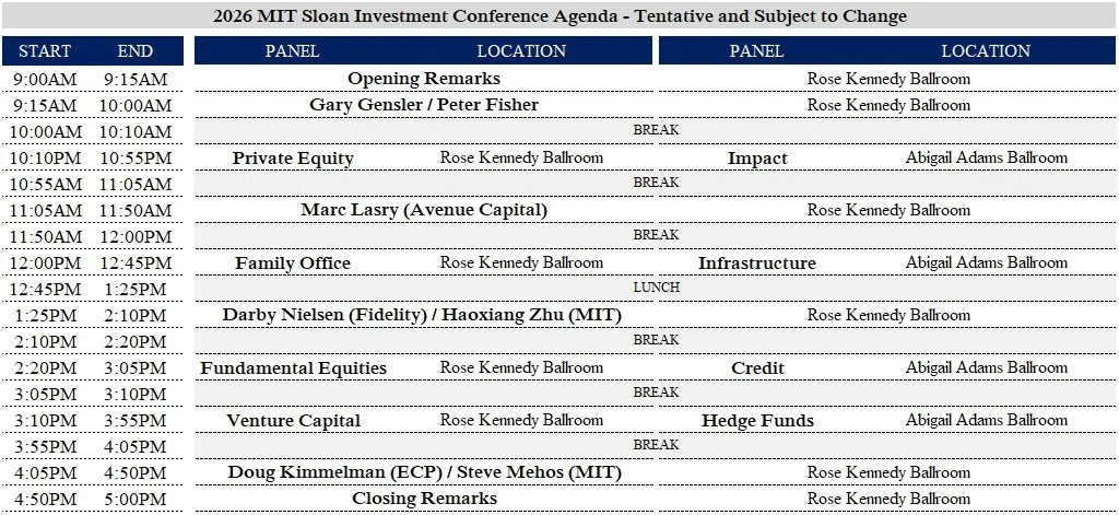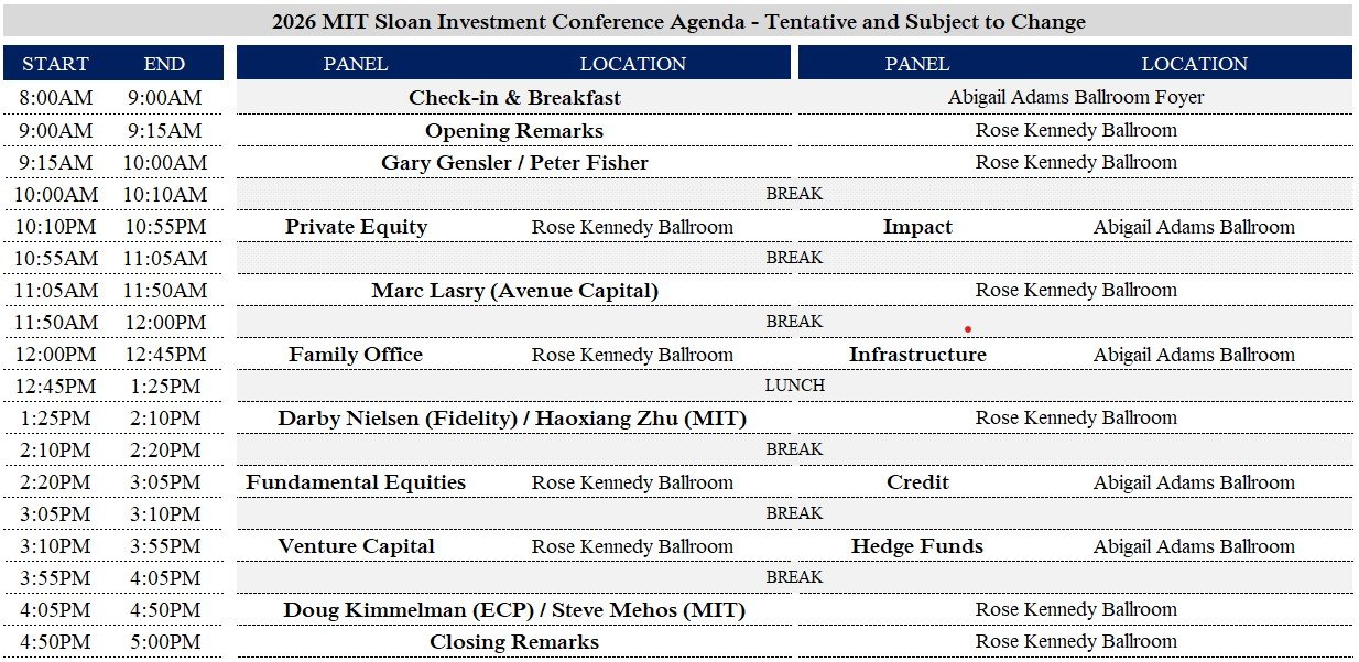 2026 MIT Sloan Investment Conference Agenda